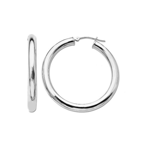 Duragold 14k White Gold Hoop Earrings, (1.1" Diameter) Product Description: