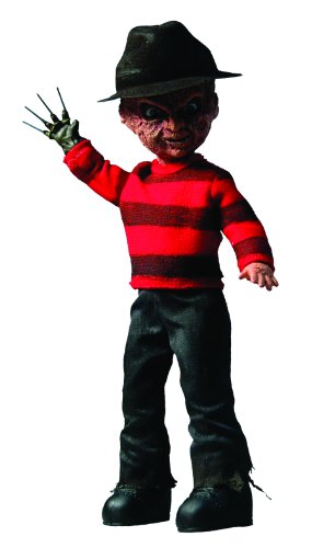 From the 1984 horror masterpiece that launched a million nightmaresA Nightmare On Elm Streets infamous maniac steps out of your dreams and into Living Dead Doll form. Dressed in his trademark striped sweater, the terror of Elm Street comes with a removable hat and his trademark razorsharp glove. Classic Freddy Krueger comes packaged in a collector friendly fifth panel window box.
