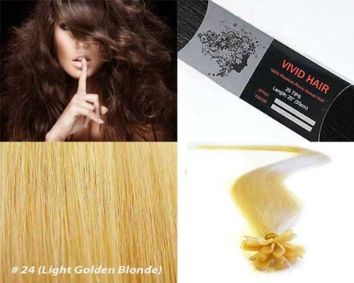 Vivid Hair 200 Strands Straight Pre Bonded U Nail Tip Fusion Remy Human Hair Extensions 22" Inches # 24 Light Golden Blonde Color Product Description:
