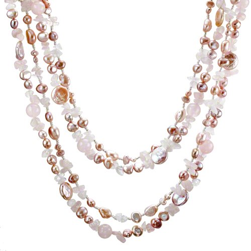 HinsonGayle "Sofia" Artisan Collection Double Strand Rose Quartz and Ultra-Iridescent Pink Cultured Pearl Rope Necklace (Sterling Silver) Product Description: